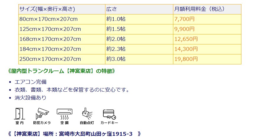 | 賃料 | 約1.0帖 月額賃料7,700円 ~ 約3.0帖 19.800円(税込)
