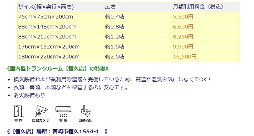 | 賃料 | 約0.4帖 月額賃料5,500円 ~ 約2.5帖 16,500円(税込)